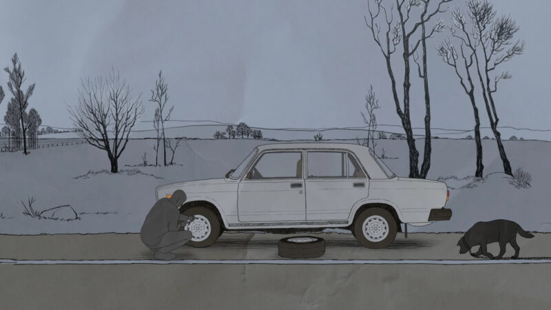 El pinchazo de una rueda sorprende a la protagonista que viaja como pasajera en un coche.